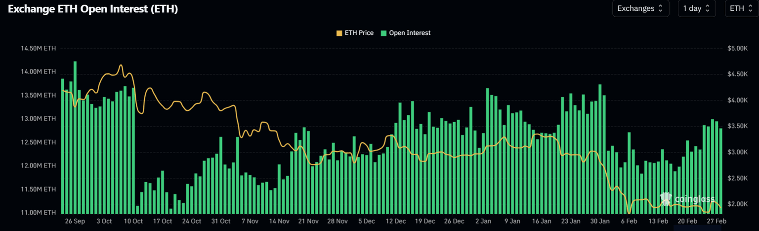 En el frente de derivados, el interés abierto de ETH creció en 500K ETH hasta 12,70 millones de ETH durante la semana, alcanzando su nivel más alto este mes a medida que los precios mostraron una ligera mejora.