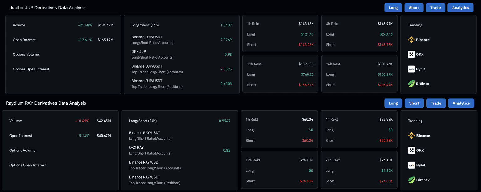 Derivados de Raydium y Jupiter. Fuente: Coinglass