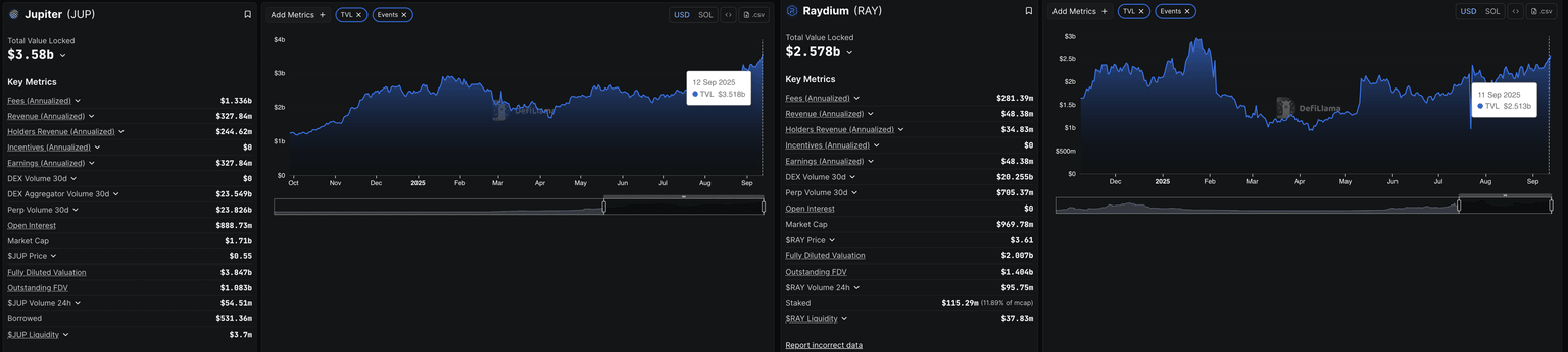 Raydium y Jupiter extienden su repunte ante el aumento del Interés Abierto y del TVL