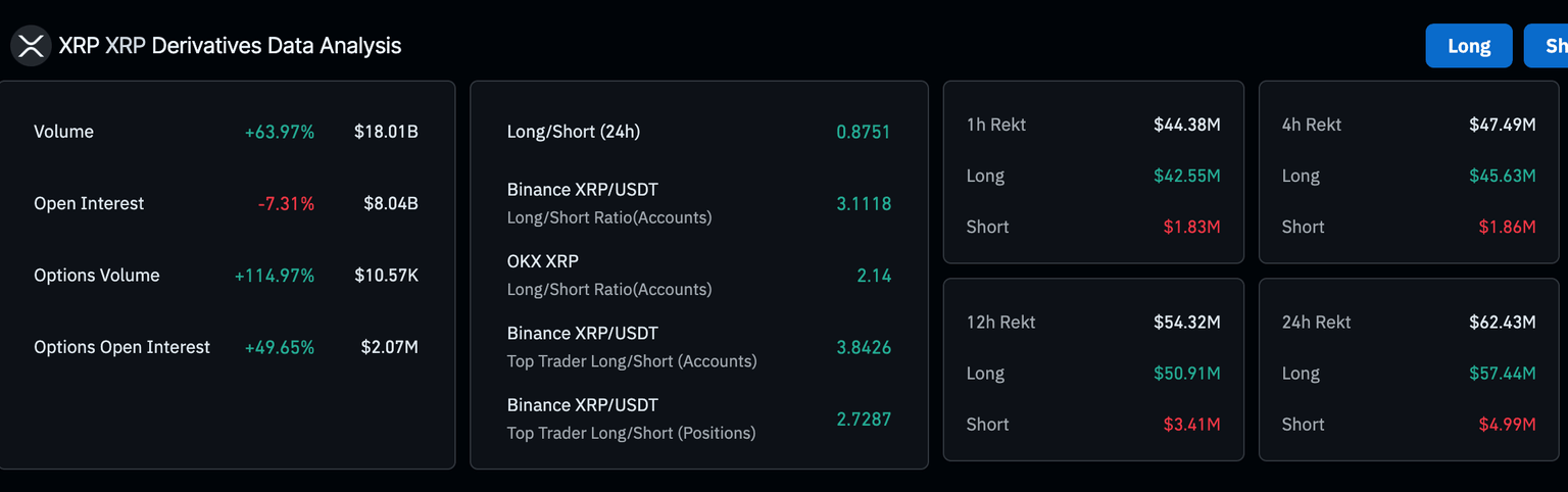 Datos de liquidaciones del mercado de derivados de XRP | Fuente: CoinGlass