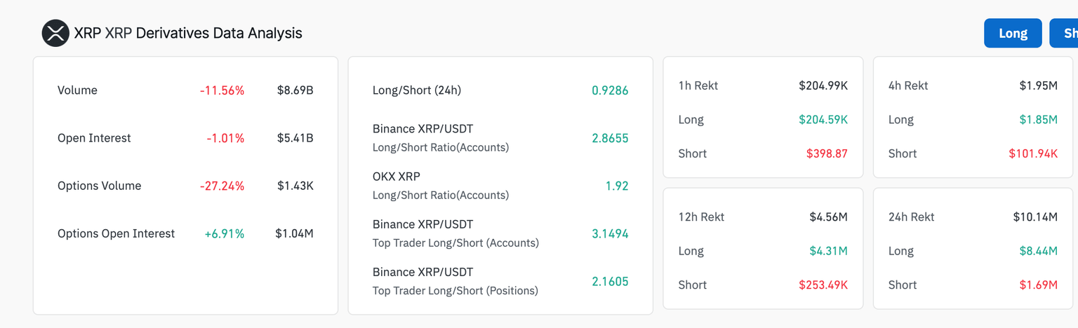 Datos del mercado de derivados de XRP | Fuente: CoinGlass