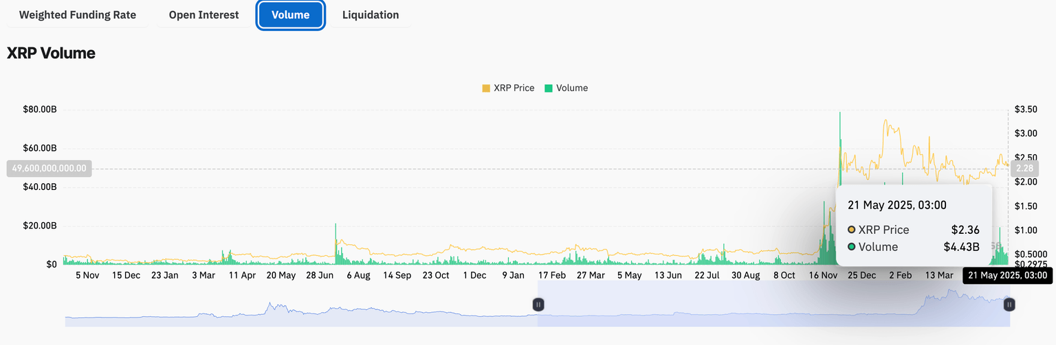 Volumen de operaciones de futuros de XRP | Fuente: CoinGlass