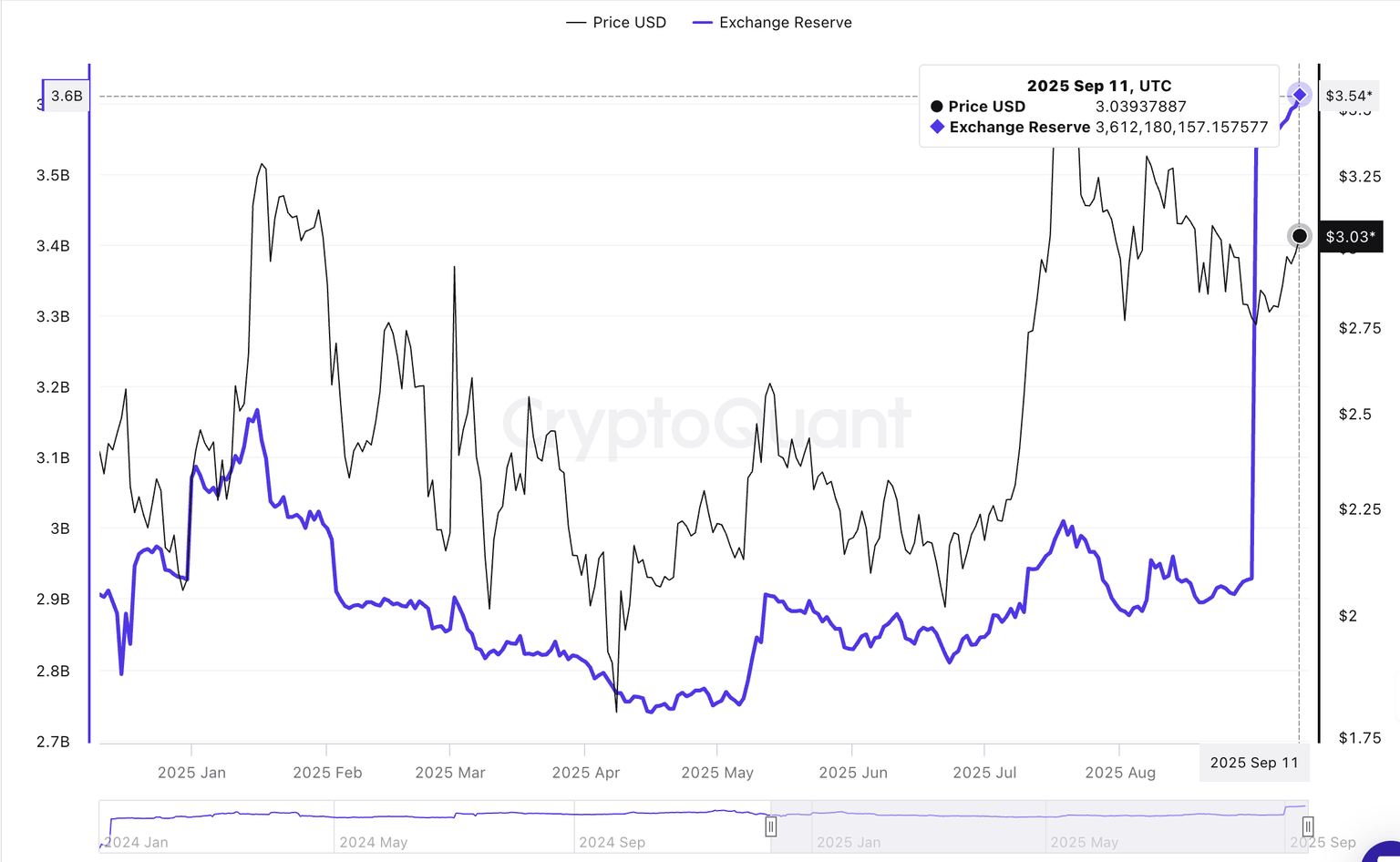 A pesar del aumento en la demanda minorista, los inversores deben prestar atención al crecimiento en las reservas de intercambio de XRP. Según los datos de CryptoQuant, el saldo de XRP en el intercambio Binance se sitúa actualmente en 3.66 mil millones de monedas, lo que representa un aumento del 23% desde aproximadamente 2.8 mil millones de tokens el 31 de agosto.