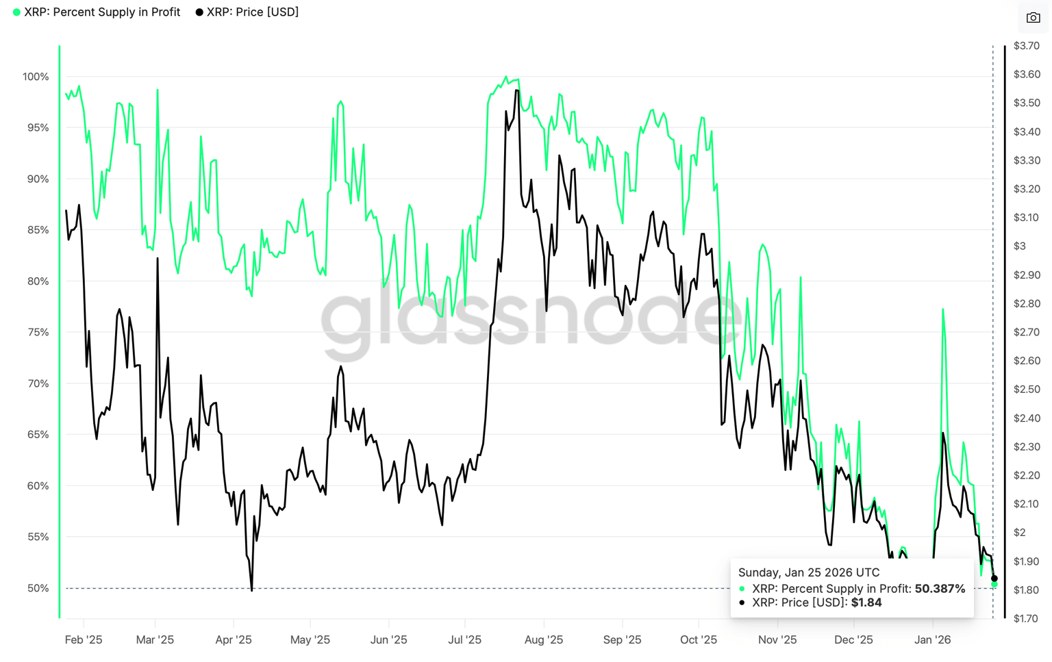 - El porcentaje de XRP en beneficios ha disminuido a niveles vistos a principios de enero en medio de una mayor capitulación de los inversores.