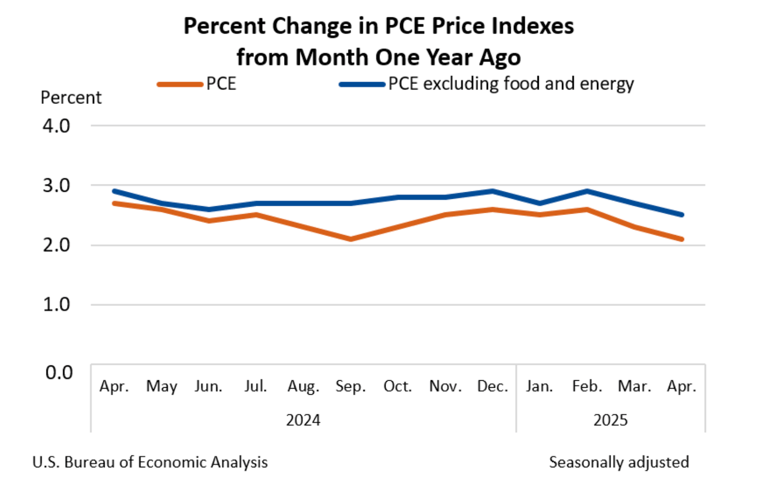 - El Índice de Precios del Gasto en Consumo Personal (PCE) subyacente de EE.UU. para abril cumple con las expectativas en 2.5%, bajando del 2.7% en marzo.