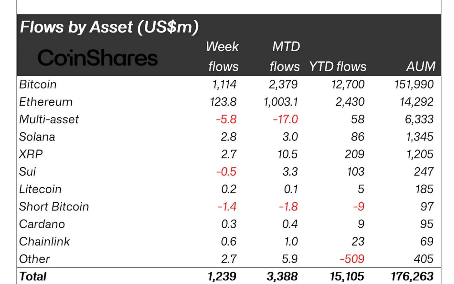 Entradas semanales de activos digitales | Fuente: CoinShares