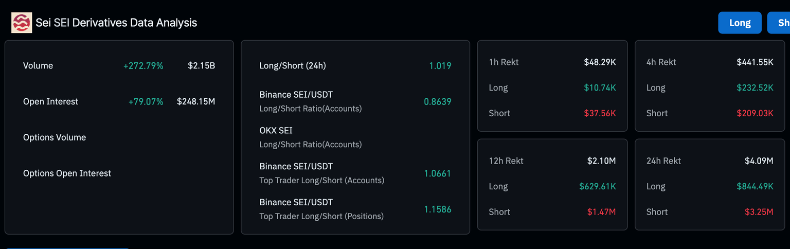 Datos del mercado de derivados de Sei | Fuente CoinGlass