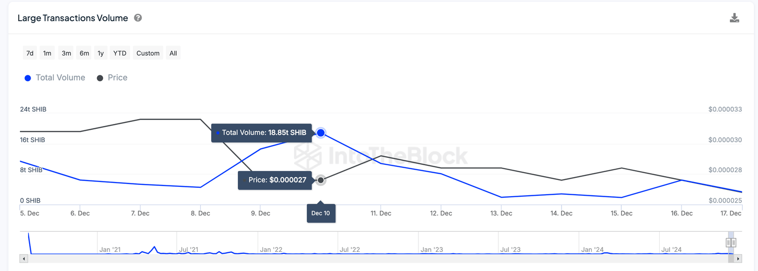 Pero desde entonces, han reducido persistentemente sus operaciones con solo 3.3 billones de SHIB negociados en grandes transacciones el 17 de diciembre.