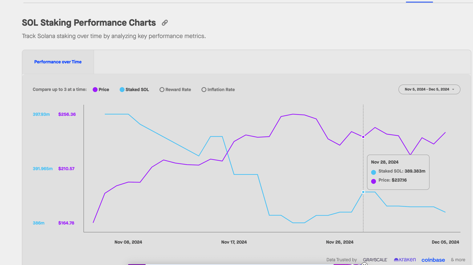 Valor total de Solana en staking, diciembre 2024 | Stakingrewards.com