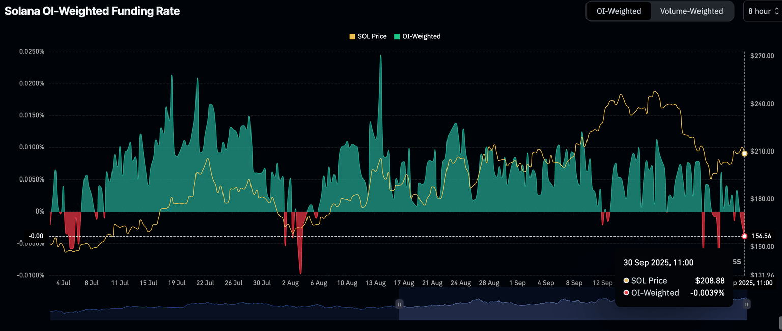 Tasa de financiación ponderada por interés abierto de Solana | Fuente: CoinGlass
