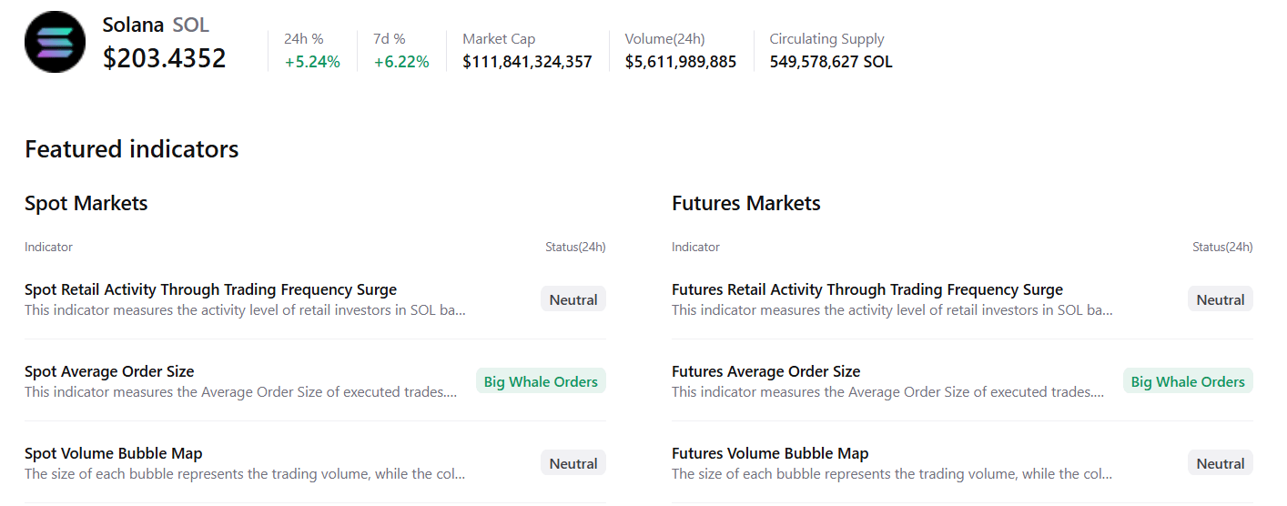 Los datos resumidos de CryptoQuant respaldan la perspectiva alcista, ya que los mercados al contado y de futuros de SOL muestran grandes órdenes de ballenas y dominancia de compra, señalando un posible repunte por delante.