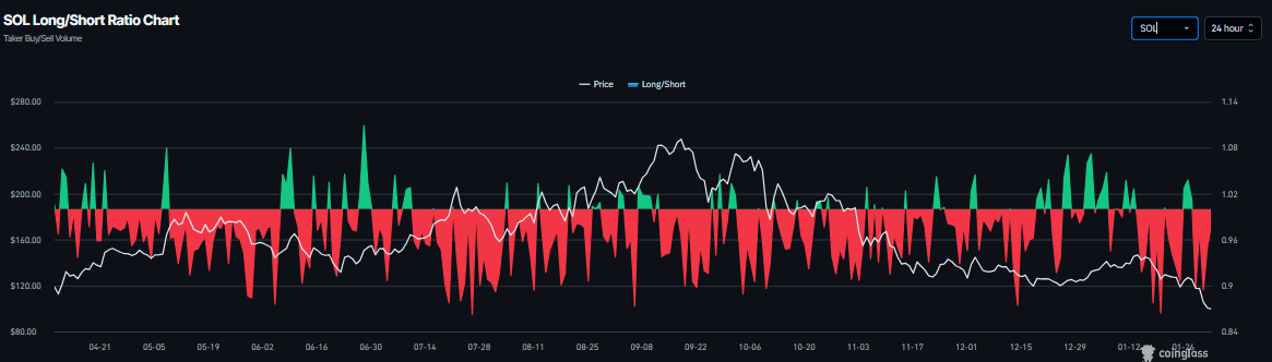 Además, la relación larga-corta de Coinglass para SOL se sitúa en 0.97 el lunes. La relación por debajo de uno sugiere un sentimiento bajista en el mercado, ya que más traders están apostando a que el precio de SOL caerá.