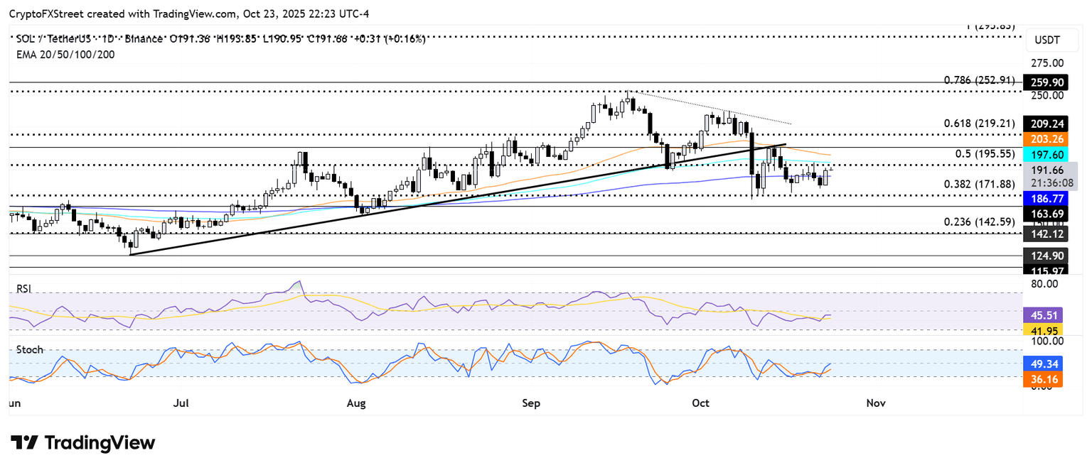 Solana subió un 6% en las últimas 24 horas, superando a las diez principales criptomonedas, mientras busca volver a probar el nivel de retroceso de Fibonacci del 50% en 195,5 $.