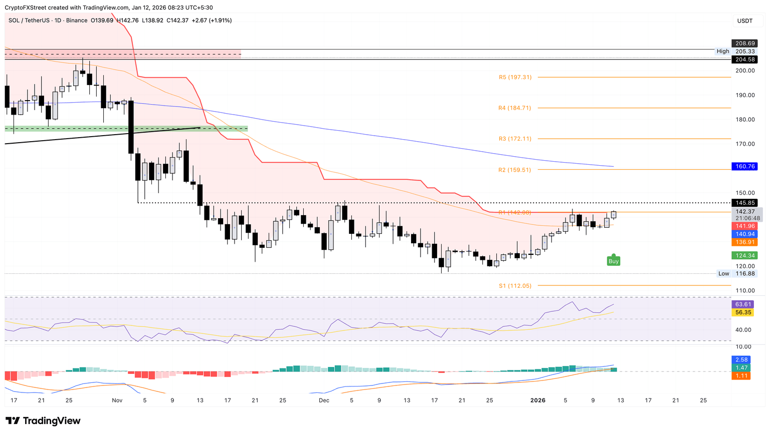 Técnicamente, la perspectiva para Solana se está volviendo alcista a medida que recupera fuerza, y el indicador Supertrend está señalando una compra.