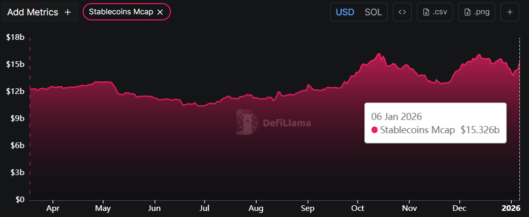 Los datos de DefiLlama muestran que la oferta total de stablecoins de SOL ha estado recuperándose desde principios de enero y actualmente se sitúa en 15.32 mil millones de dólares. Tal actividad de stablecoins y el aumento de valor en el proyecto SOL indican una perspectiva alcista, ya que aumentan el uso de la red y pueden atraer a más usuarios al ecosistema.