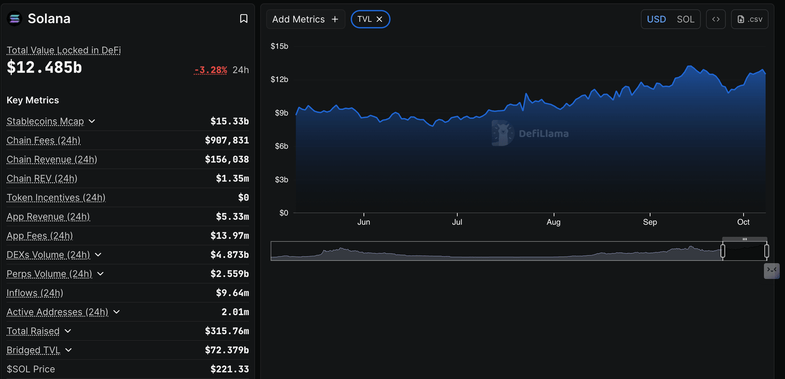 El Valor Total Bloqueado (TVL) en Finanzas Descentralizadas (DeFi) de Solana ha disminuido más del 3% en las últimas 24 horas, reflejando el sentimiento bajista a corto plazo en el ecosistema.