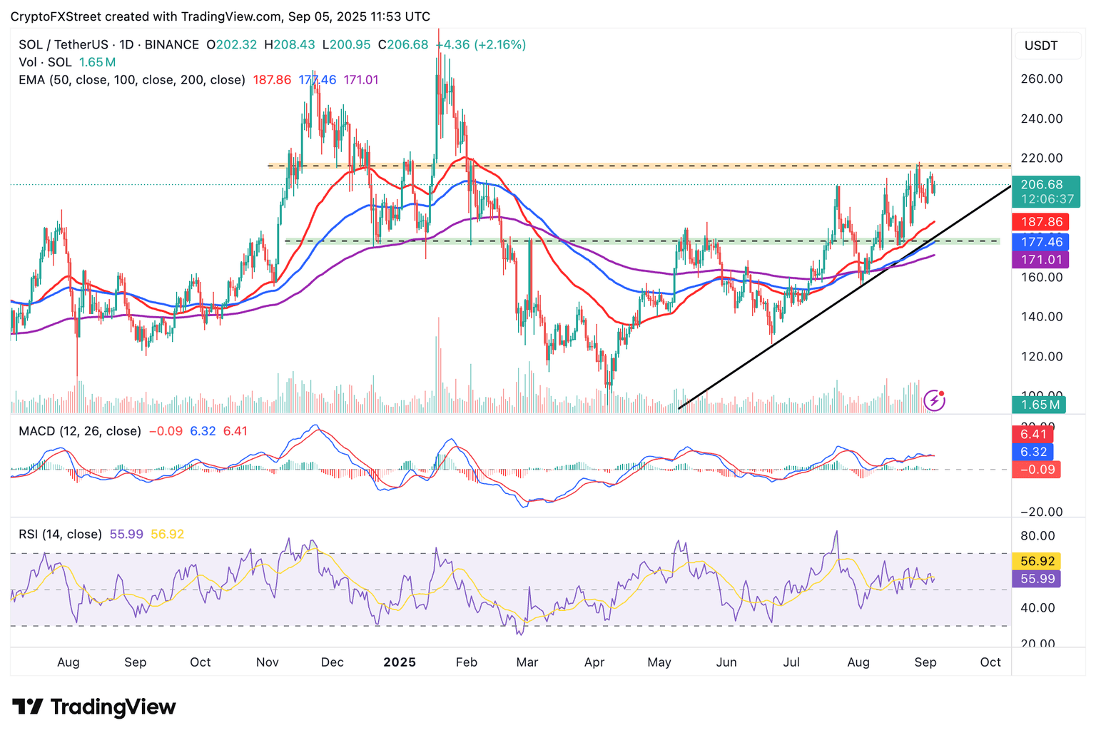 Solana (SOL) está ofreciendo sutiles señales alcistas, cotizando por encima de 205$ el viernes, reflejando un sentimiento de riesgo tras la publicación de datos económicos clave de los Estados Unidos (EE.UU.), incluyendo la Tasa de Desempleo y las Nóminas No Agrícolas (NFP).