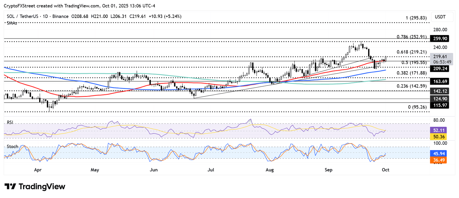 - SOL está probando la resistencia cerca de 219$ después de haber subido un 7% en las últimas 24 horas.