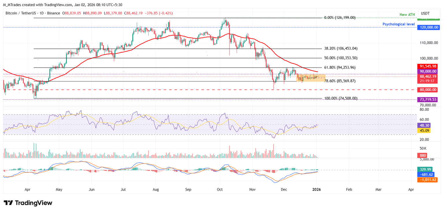 Bitcoin (BTC), Ethereum (ETH) y Ripple (XRP) comenzaron el nuevo año cotizando en niveles técnicos clave el viernes, mientras los operadores buscan nuevas señales direccionales en enero. Con BTC atrapado en un rango estrecho, ETH se acerca a su media móvil exponencial (EMA) de 50 días, mientras que XRP se aproxima a la resistencia. Un claro breakout en estas tres principales criptomonedas podría ayudar a definir el impulso del mercado en las primeras semanas del año.