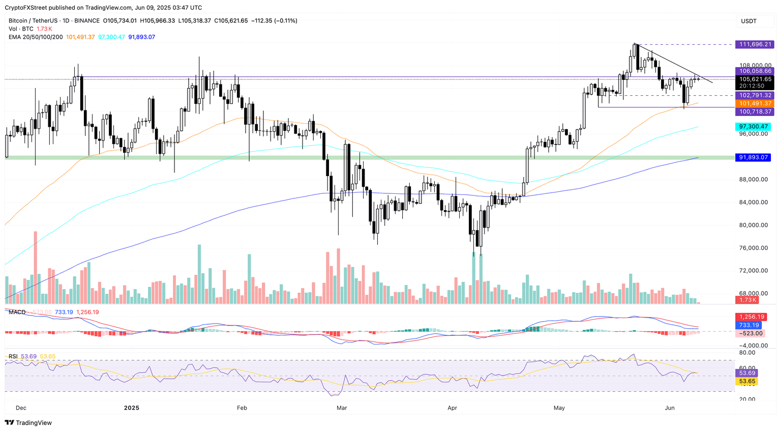 La acción del precio advierte sobre una reversión de doble techo junto a una línea de tendencia de resistencia a corto plazo, añadiendo vientos en contra. Los operadores que anticipan una tendencia alcista deben esperar un cierre diario por encima de 106.058$ para evitar trampas.