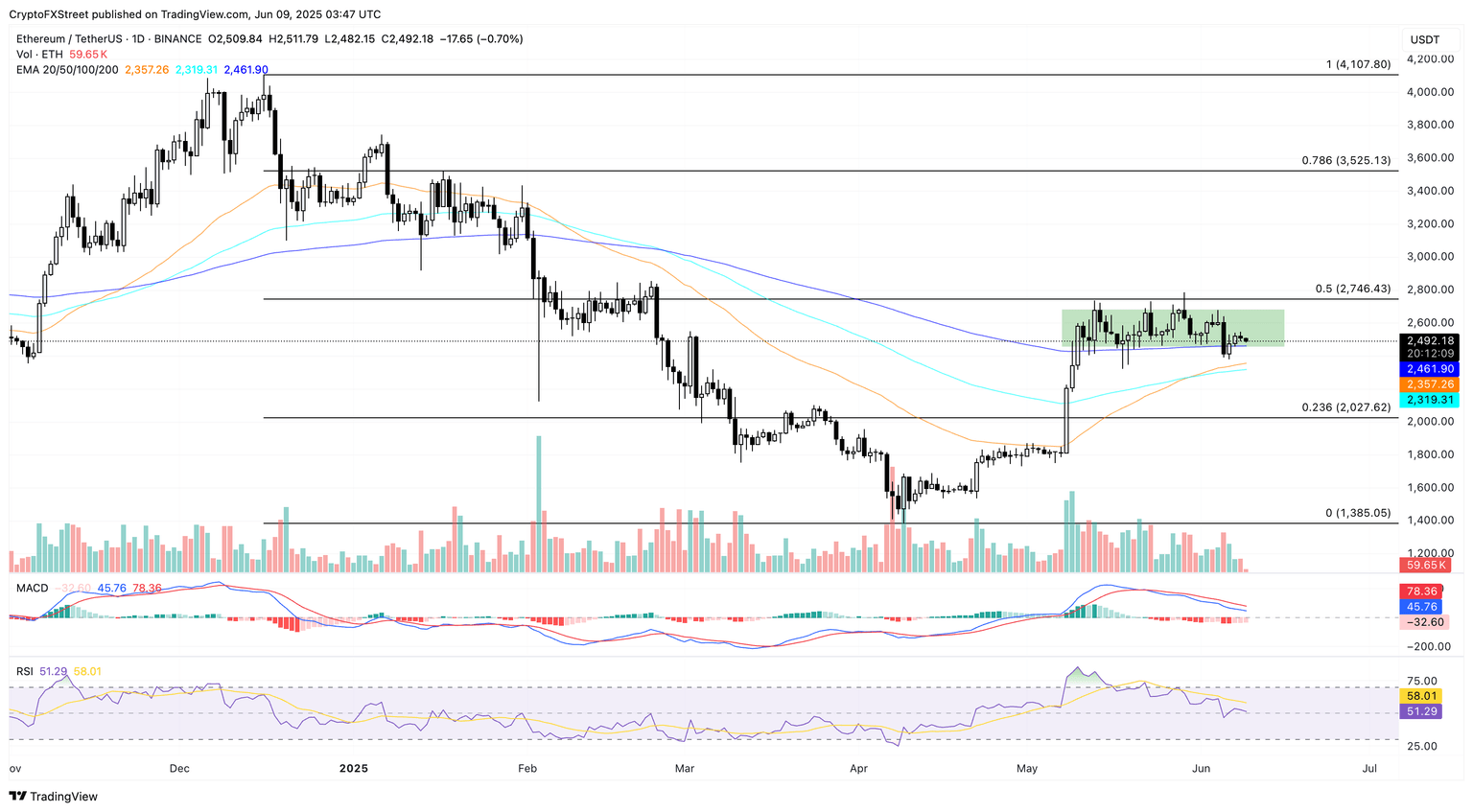 Los operadores pueden encontrar oportunidades de venta si la mayor altcoin cierra por debajo de la media móvil exponencial (EMA) de 200 días en 2.461 $, con el siguiente soporte en 2.357 $, la EMA de 50 días.