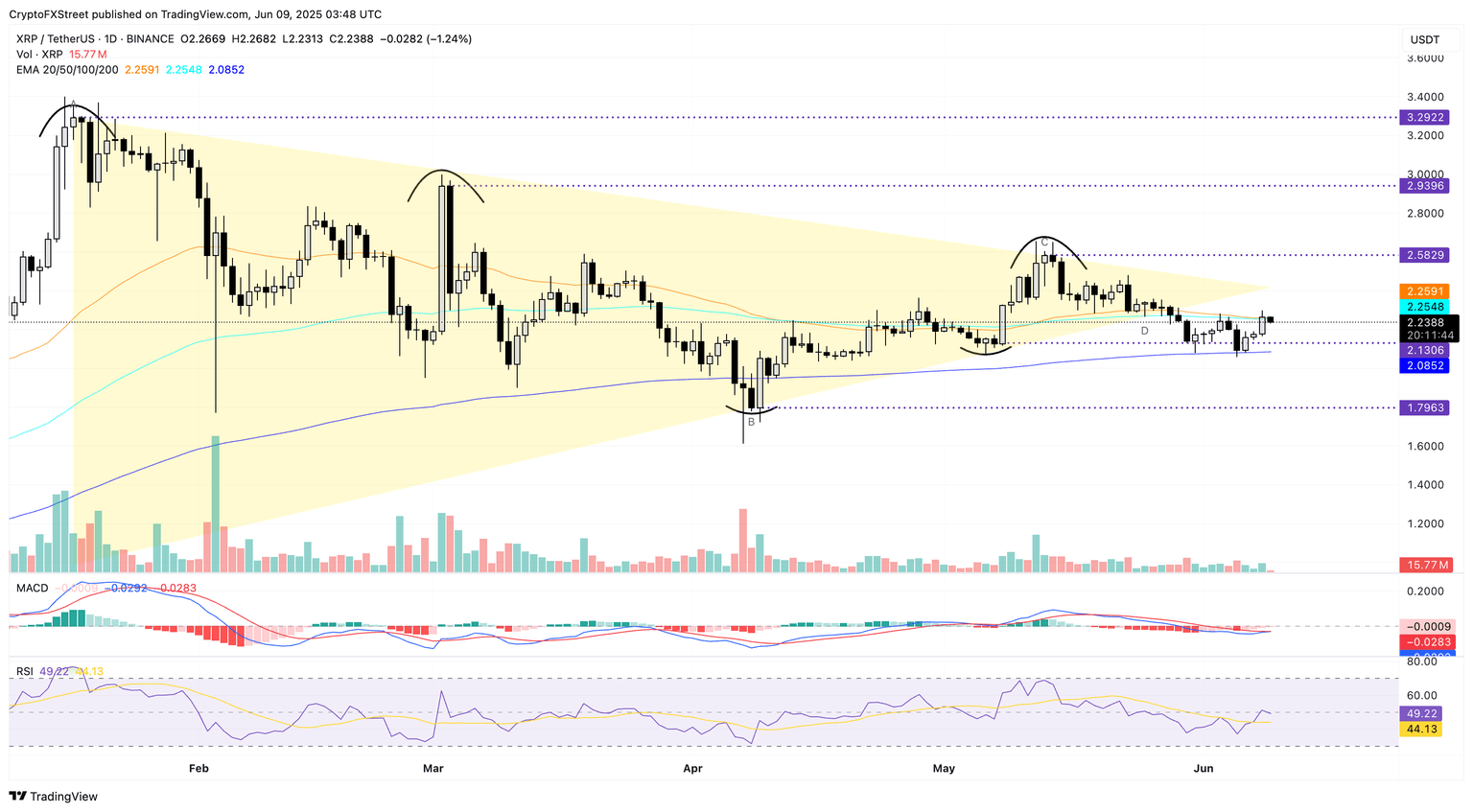 Un cierre diario por encima de la EMA de 50 días en 2.25$ podría impulsar a XRP al cierre más alto de mayo en 2.58$.