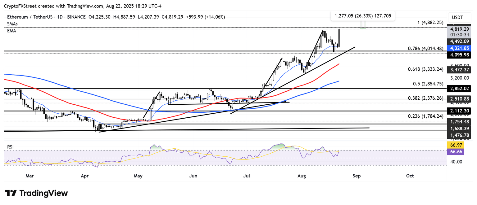 - Ethereum cruzó la marca de 4.800$ por primera vez en casi cuatro años tras los comentarios dovish del presidente de la Fed, Powell, en Jackson Hole.
