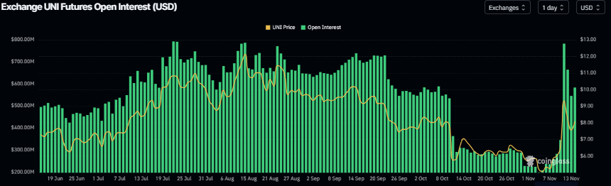 Uniswap (UNI) se negocia en verde por encima de 7.86$ en el momento de escribir el jueves, y parece estar estabilizándose después de un fuerte aumento del 40% a principios de semana. El lanzamiento de la propuesta de gobernanza ‘UNIfication’ por parte de Uniswap Labs y la Fundación Uniswap el lunes ha generado optimismo en todo el ecosistema, ya que los operadores se posicionan para un aumento continuo en medio de una creciente actividad de ballenas y un aumento del interés en derivados.