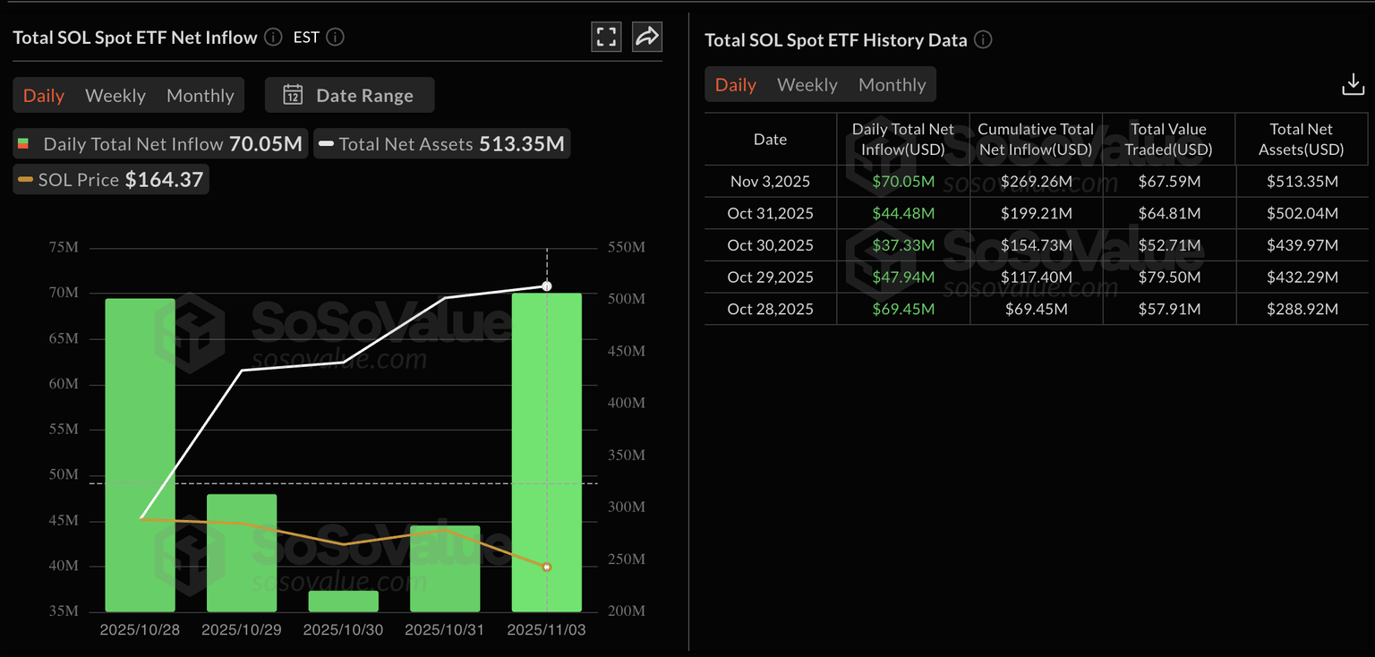 Entradas de ETFs de SOL al contado. Fuente: Sosovalue.