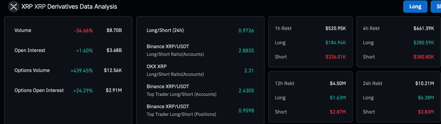En otras palabras, muchos inversores están manteniendo el activo con pérdidas y es poco probable que vendan, ya que realizarían una pérdida. Como esto puede traducirse en una reducción de la presión de venta, los alcistas de XRP podrían encontrar espacio para maniobrar, rompiendo y empujando hacia una recuperación drástica.