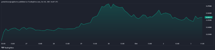 Al momento de redactar este artículo, WSM está en segundo lugar cuando se trata de volumen de operaciones diarias, solo superada por DOGE, según Coinmarketcap. Ahora, el token comenzó a cotizar a un precio de 0,0398 dólares y su máximo lo consiguió el sábado 30 de septiembre cuando alcanzó los 0,089 dólares.
