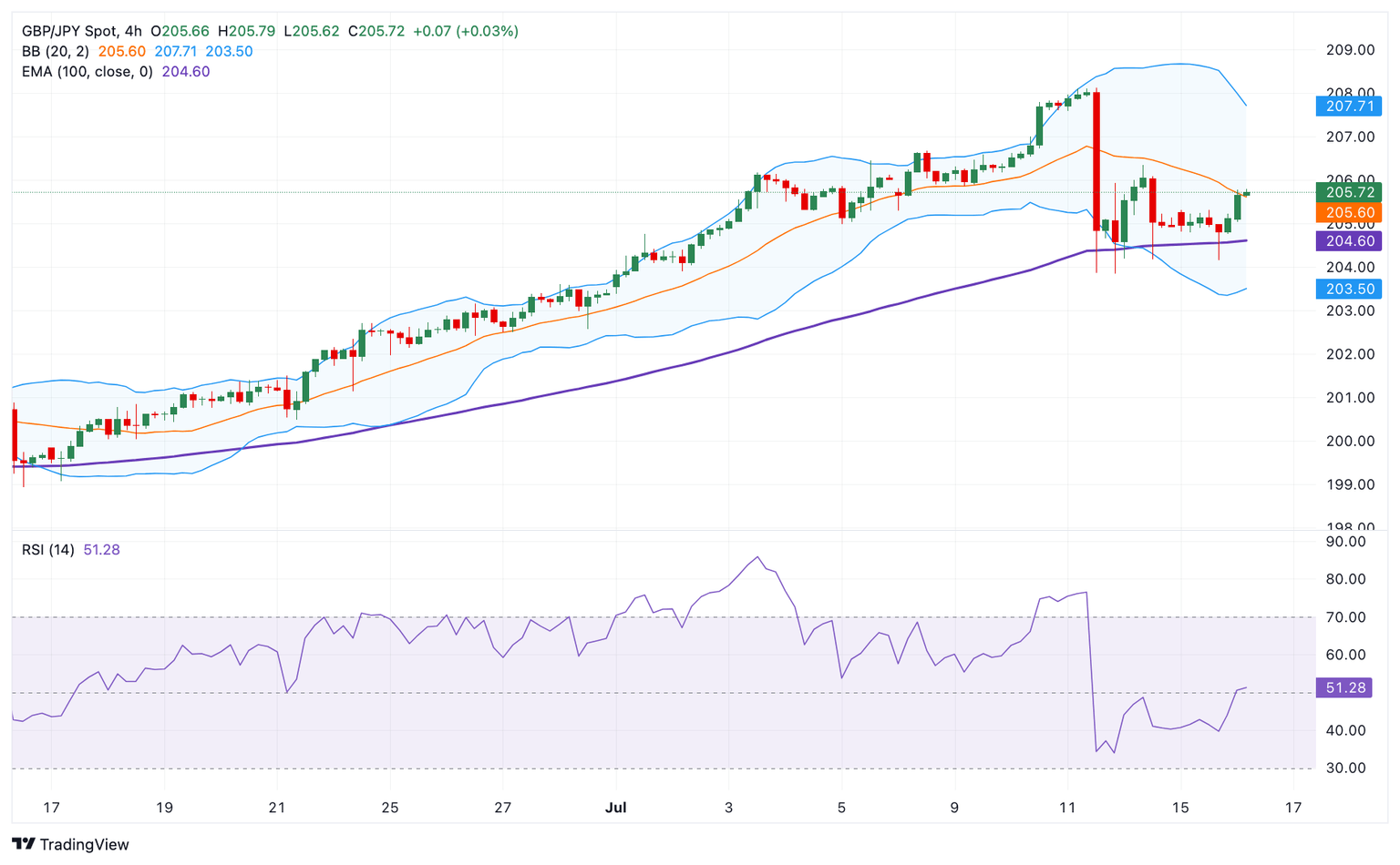 Análisis del precio del GBP/JPY: La perspectiva alcista se mantiene intacta por encima de 205,50