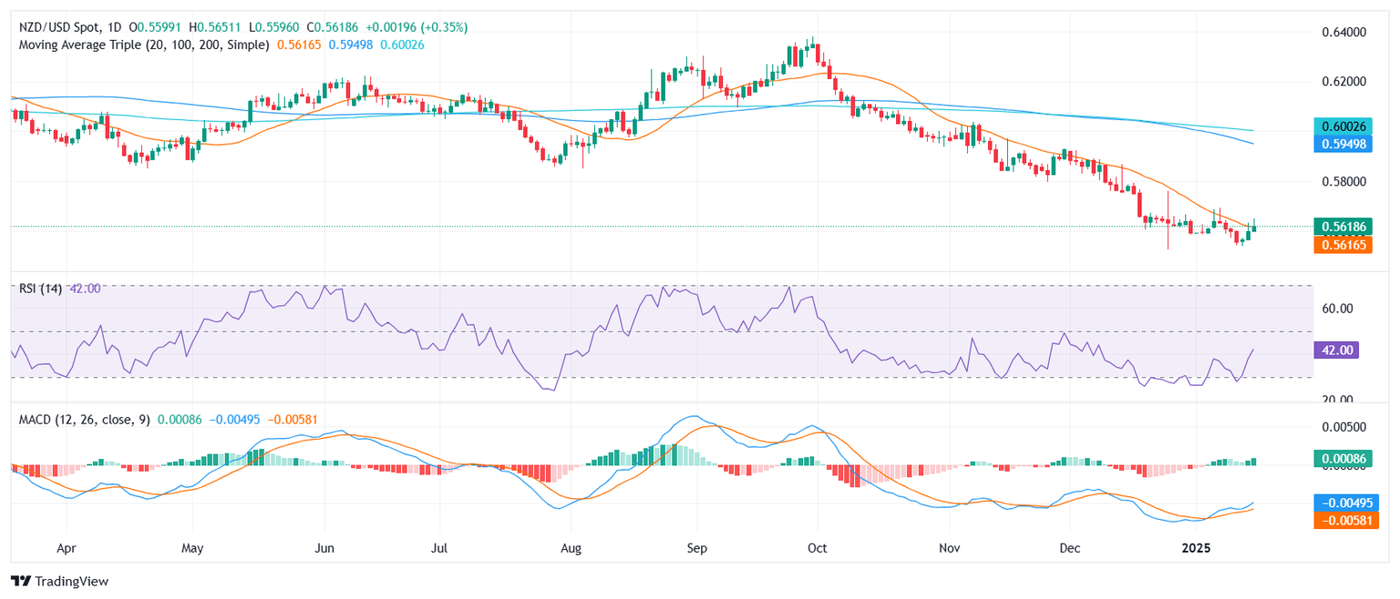 Si el NZD/USD puede solidificar su posición por encima de la SMA de 20 días cerca de 0.5600, los operadores podrían apuntar a más alzas hacia la zona de resistencia de 0.5650, con un movimiento más allá de este nivel potencialmente abriendo la puerta a 0.5700. Por el contrario, una caída por debajo de 0.5580 socavaría el reciente rebote y dejaría al par vulnerable a volver a probar la zona de 0.5550 o más baja.