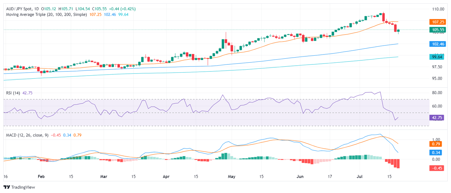- El AUD/JPY recorta pérdidas, subiendo a 105.40, aún en mínimos de más de un mes.