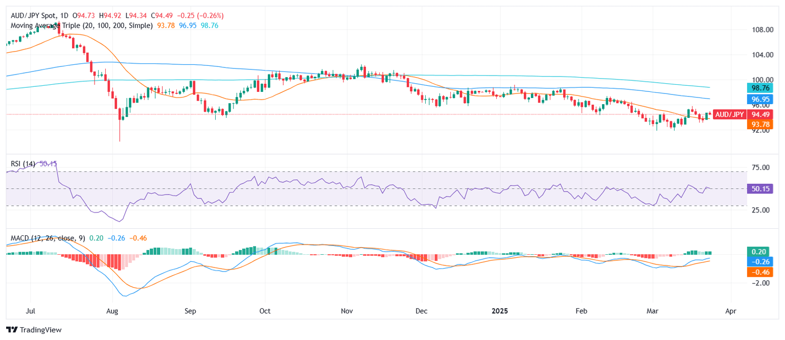 El par AUD/JPY se observó alrededor de la zona de 94.40 después de la sesión europea del martes, registrando un leve descenso y situándose aproximadamente en el punto medio del rango de negociación del día. Mientras que las medias móviles a corto plazo y algunas herramientas de impulso se inclinan hacia lo alcista, las señales de tendencia a más largo plazo y los osciladores más amplios sugieren que el par está atrapado en una postura neutral al entrar en la sesión asiática.