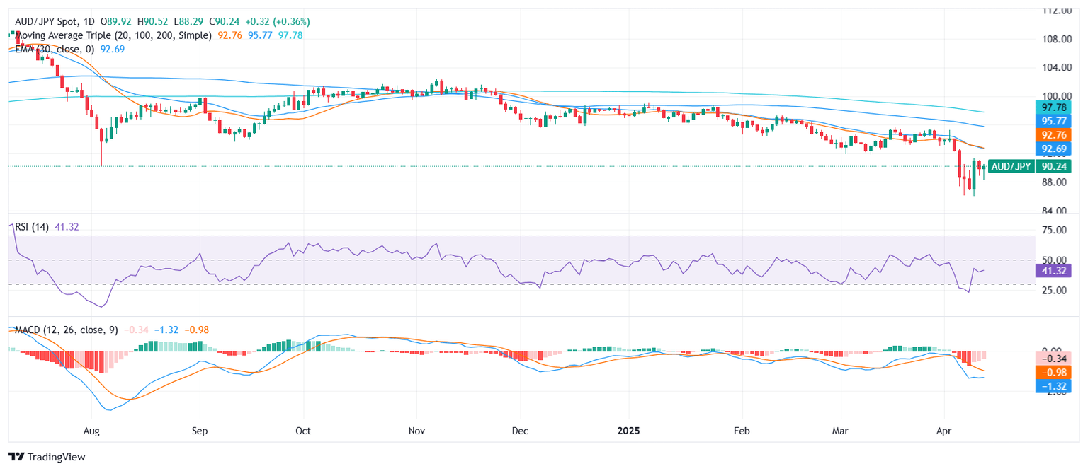- El AUD/JPY opera cerca de la zona 90.30 tras ganancias modestas el viernes.