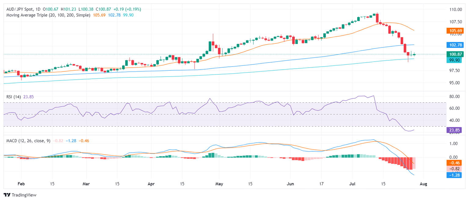 - El par AUD/JPY continúa un ascenso constante en la sesión del lunes, asentándose en 100.85, aunque aún muestra un patrón de pérdidas durante varias semanas.