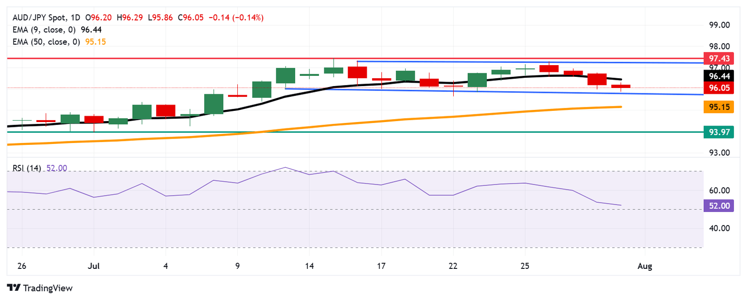 - El AUD/JPY puede encontrar resistencia primaria en la EMA de 9 días en 96.44.