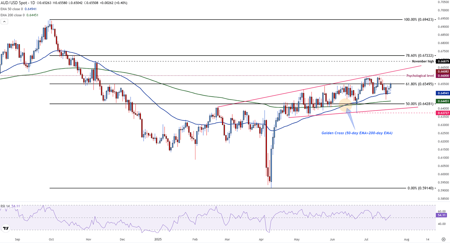 La creciente presión política del presidente Donald Trump sobre el presidente de la Fed, Jerome Powell, incluidos los renovados llamados a recortes de tasas e incluso la renuncia de Powell, ha apoyado las recientes ganancias en el AUD/USD.