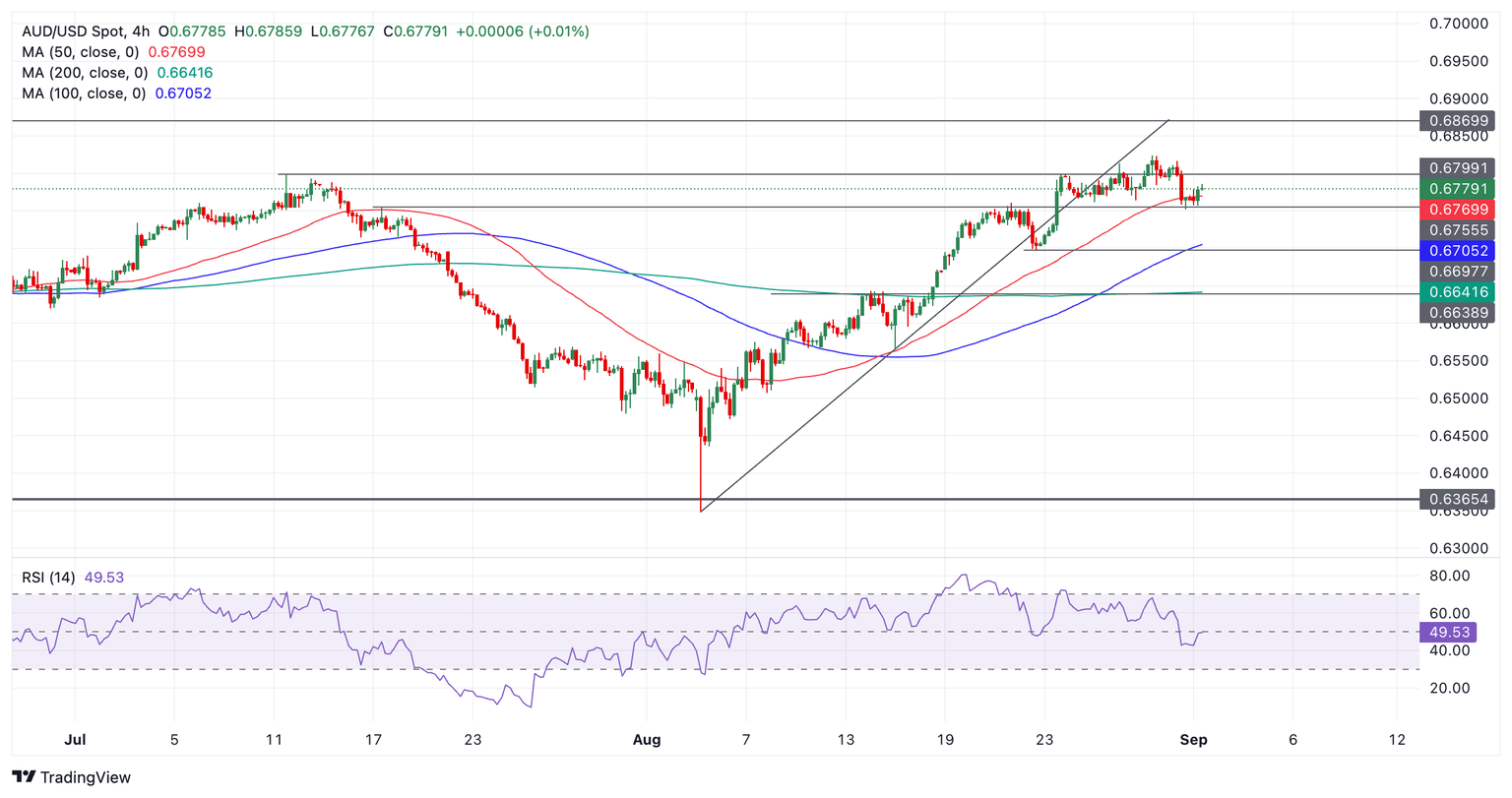 El AUD/USD ha estado en una tendencia alcista durante todo agosto. Alcanzó un nuevo máximo de 0.6824 el 29 de agosto y luego retrocedió.