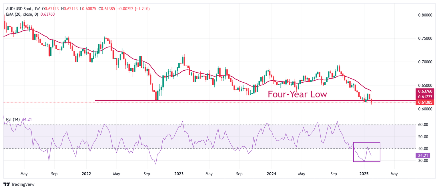 - El AUD/USD renueva el mínimo de cuatro años cerca de 0.6100 mientras el presidente de EE.UU., Trump, impone aranceles del 10% a China.