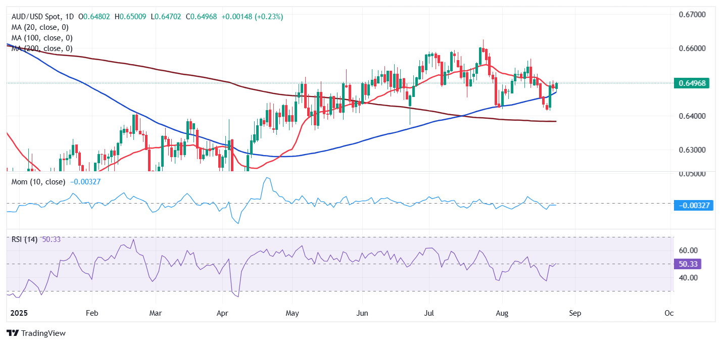 El AUD/USD cotiza por encima de 0.6500 en medio de un mejor sentimiento del mercado