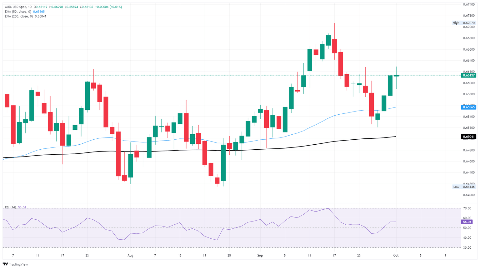 El AUD/USD tomó un respiro el miércoles, moviéndose en su lugar cerca de 0.6620 después de una racha de ganancias de tres días que vio al Dólar estadounidense (USD) rebotar desde un mínimo de tres semanas de 0.6520 frente al Dólar australiano (AUD). El gobierno de EE.UU. ha entrado en su cuarto cierre federal durante los dos mandatos de Donald Trump como presidente, y la Oficina de Estadísticas Laborales (BLS) ha advertido que no podrá entregar los últimos datos de Nóminas no Agrícolas (NFP) en medio de un cierre federal.