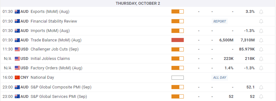 - Las cifras de la balanza comercial australiana se publicarán a primera hora del jueves.