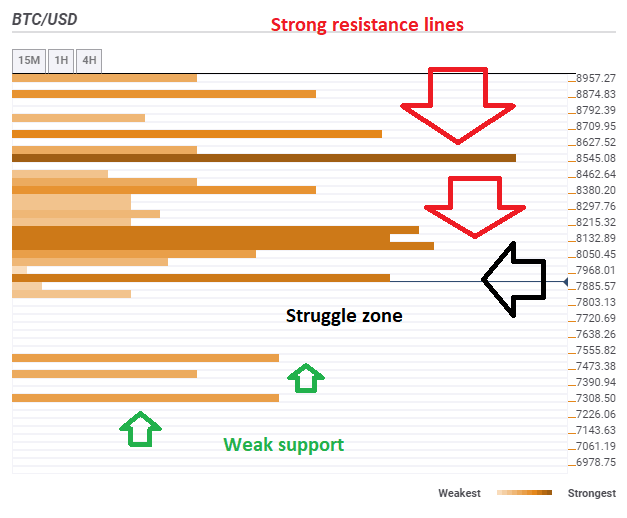 El gráfico de confluencia es bajista para el BTC/USD. El camino de menor resistencia está abajo.