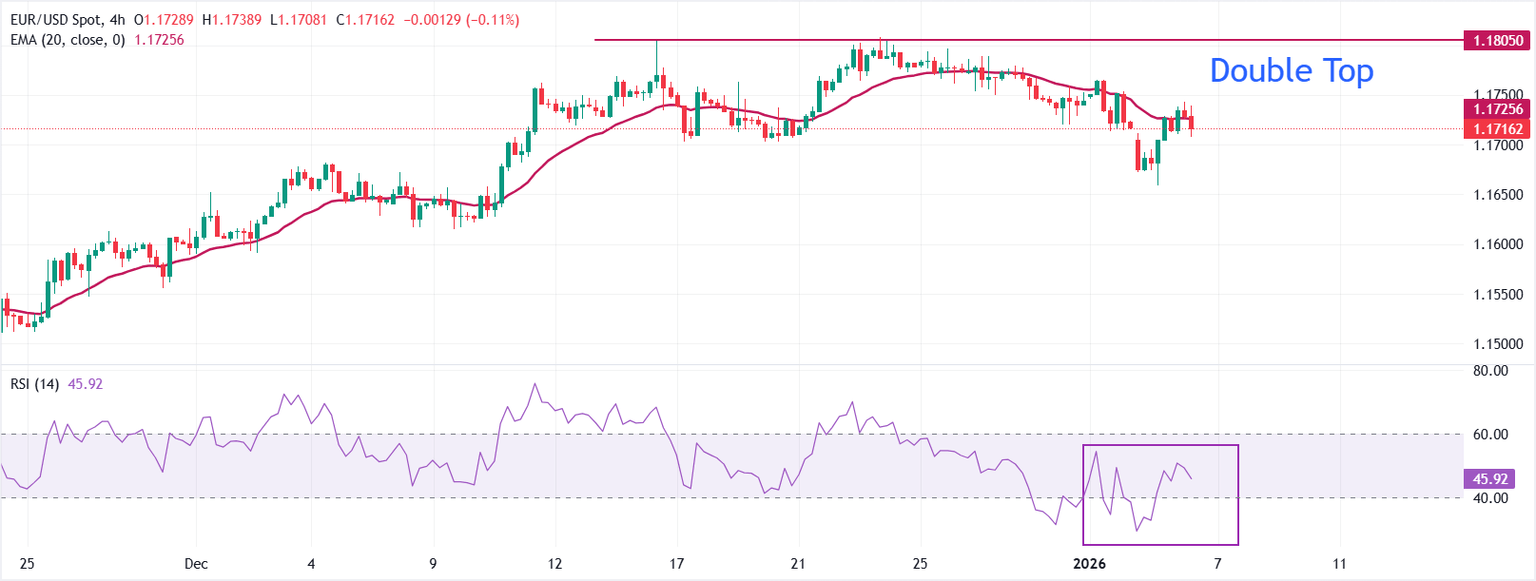 Por debajo de la media móvil descendente, los vendedores mantienen el control y podrían empujar el precio a la baja, cerca del mínimo de diciembre de 2025 alrededor de 1.1600. Por el lado positivo, un cierre claro por encima del máximo del 16 de diciembre de 1.1804 podría abrir la puerta a más ganancias hacia el máximo del 17 de septiembre de 2025 de 1.1919.