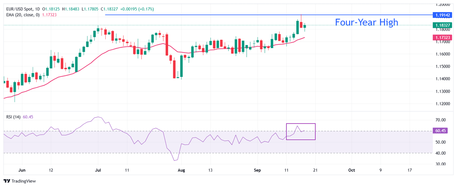El EUR/USD cotiza con cautela cerca de 1.1750 durante la sesión de negociación europea. El par de divisas principal reanuda su trayectoria a la baja el miércoles tras un movimiento de recuperación de dos días cerca de 1.1820. El par ha estado bajo presión ya que el Dólar estadounidense (USD) se negocia firmemente, tras el anuncio de política monetaria de la Fed la semana pasada.