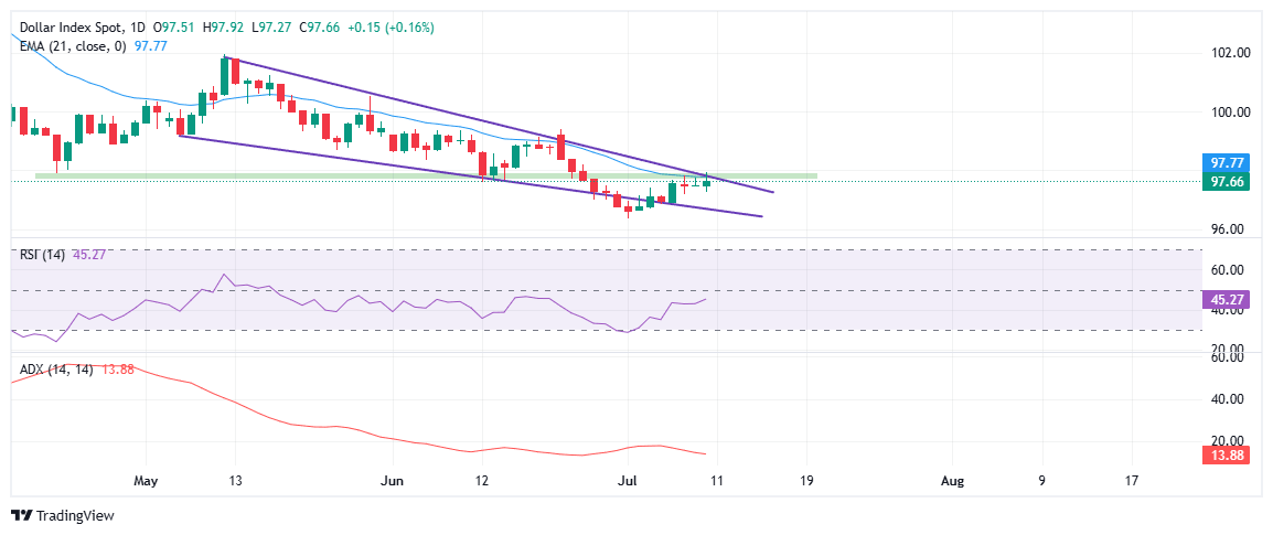 - El Dólar estadounidense se mantiene estable por encima de 97.50 tras pérdidas modestas durante las horas de negociación en Asia.