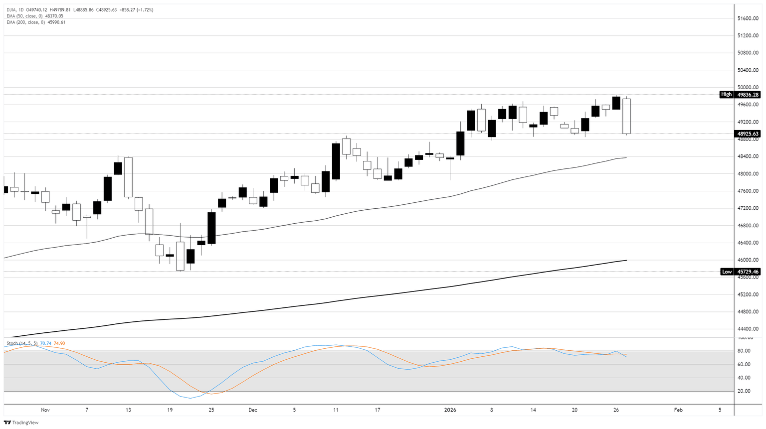 El Promedio Industrial Dow Jones (DJIA) sufrió una caída el martes, alejándose del grupo de índices principales respaldados por la tecnología y cayendo alrededor de 500 puntos, o un uno por ciento, en un día de negociación por lo demás tranquilo. El índice de acciones principales Standard and Poor’s 500 ganó alrededor de medio uno por ciento, y el índice Nasdaq, centrado en tecnología, subió un punto porcentual completo.