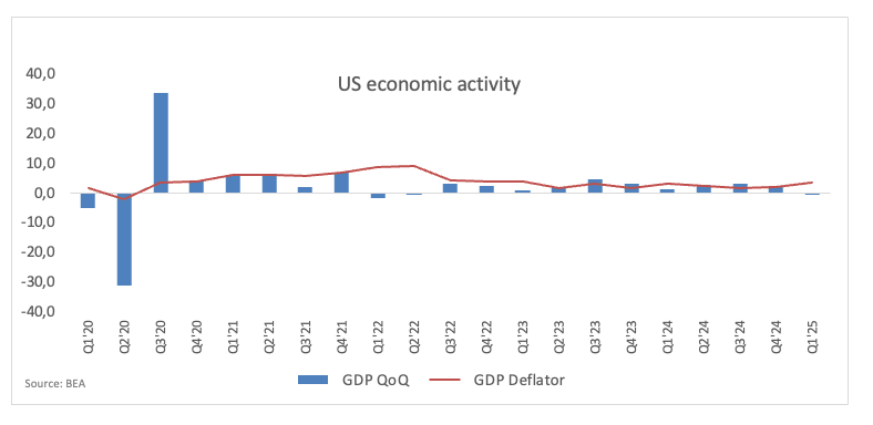 EE.UU.: La tasa de crecimiento del PIB preliminar del primer trimestre fue del -0.2% frente al -0.3% esperado